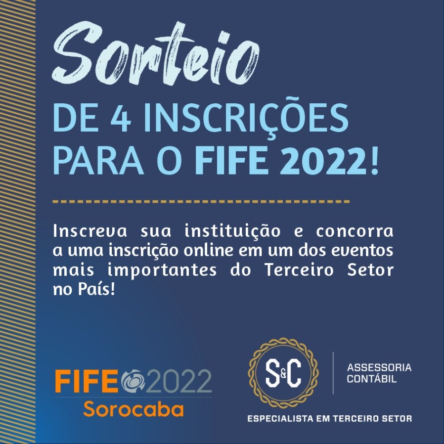O FIFE 2022 está chegando! Este ano um dos eventos mais importantes do Terceiro Setor no País será realizado no formato híbrido, com público presencial em Sorocaba – SP e com transmissão ao vivo das atividades. A programação está repleta de palestras, oficinas, networking e diversas outras capacitações que promoverão debates e troca de conhecimentos. Você não pode perder a oportunidade de participar desse encontro! Pensando nisso, a S&C Assessoria Contábil, uma das patrocinadoras do evento, está disponibilizando 4 (quatro) bolsas online. Está interessado? Então, leia o regulamento e inscreva-se pelo link na bio.